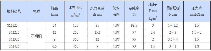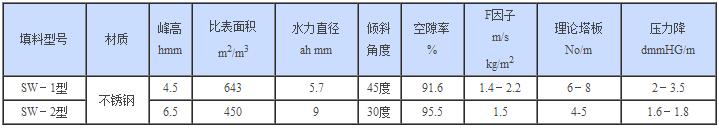 SW型网孔波纹填料几何特性参数